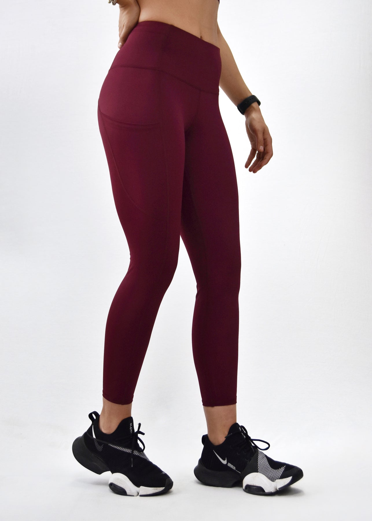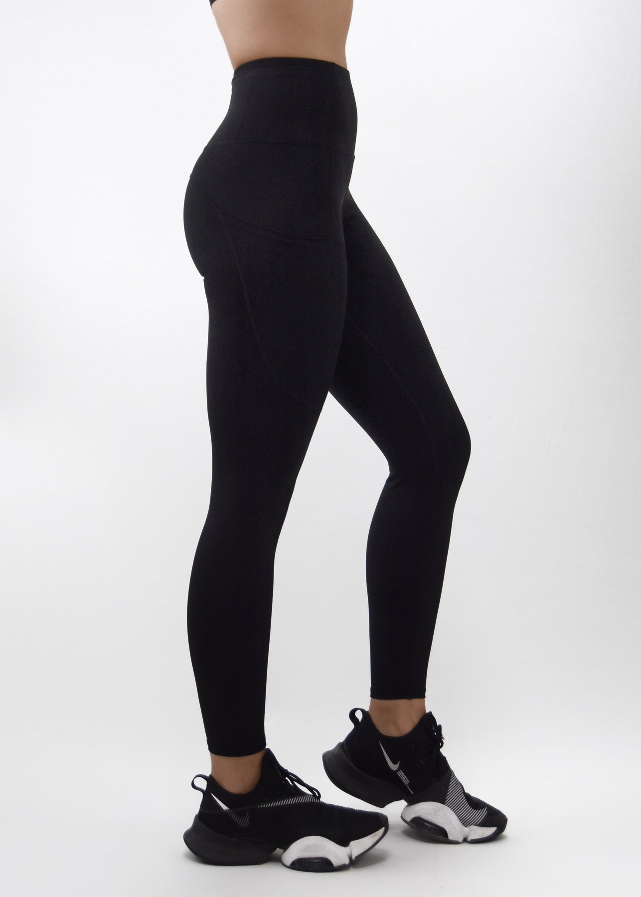 -High rise leggings with side pockets.